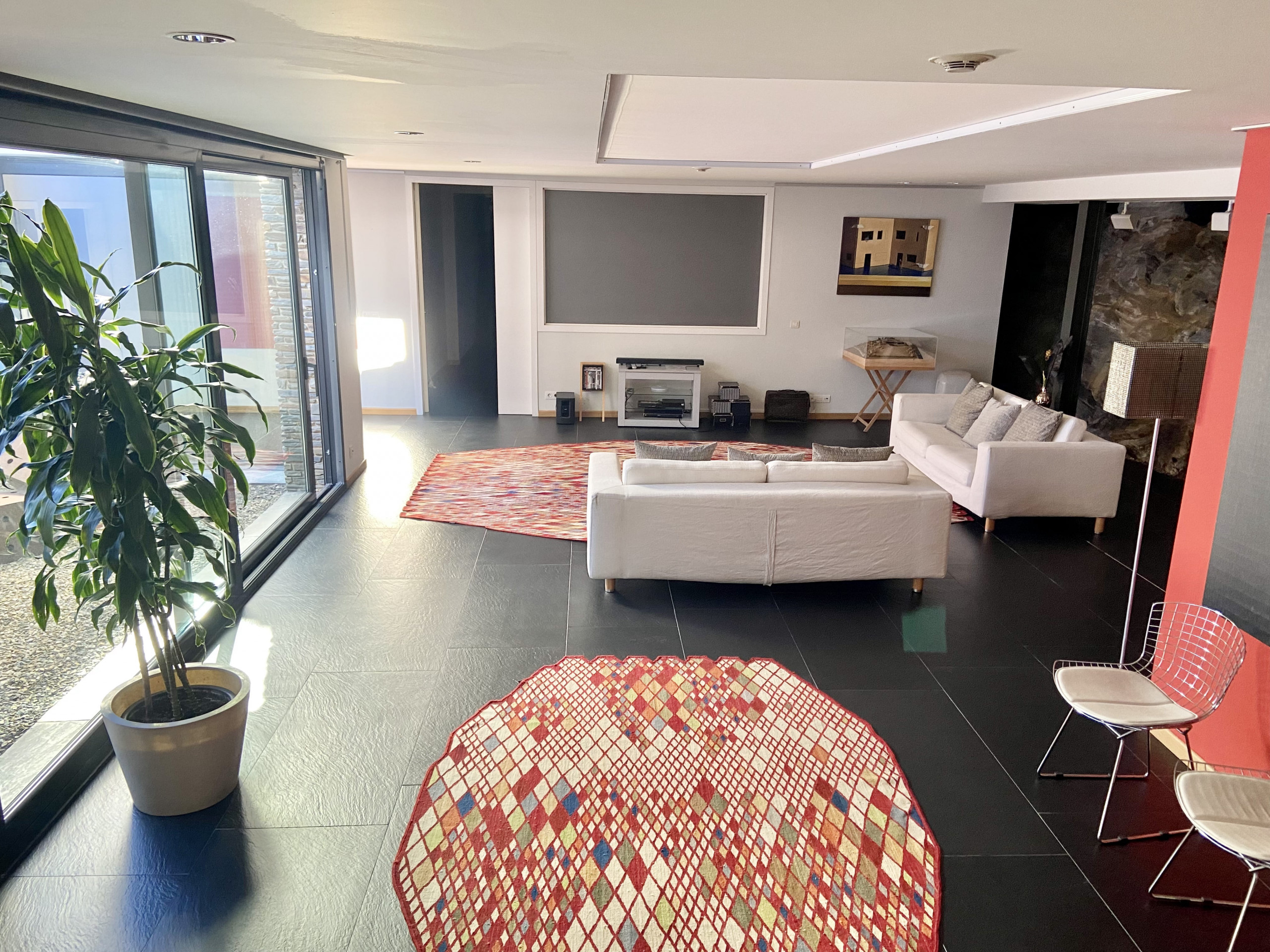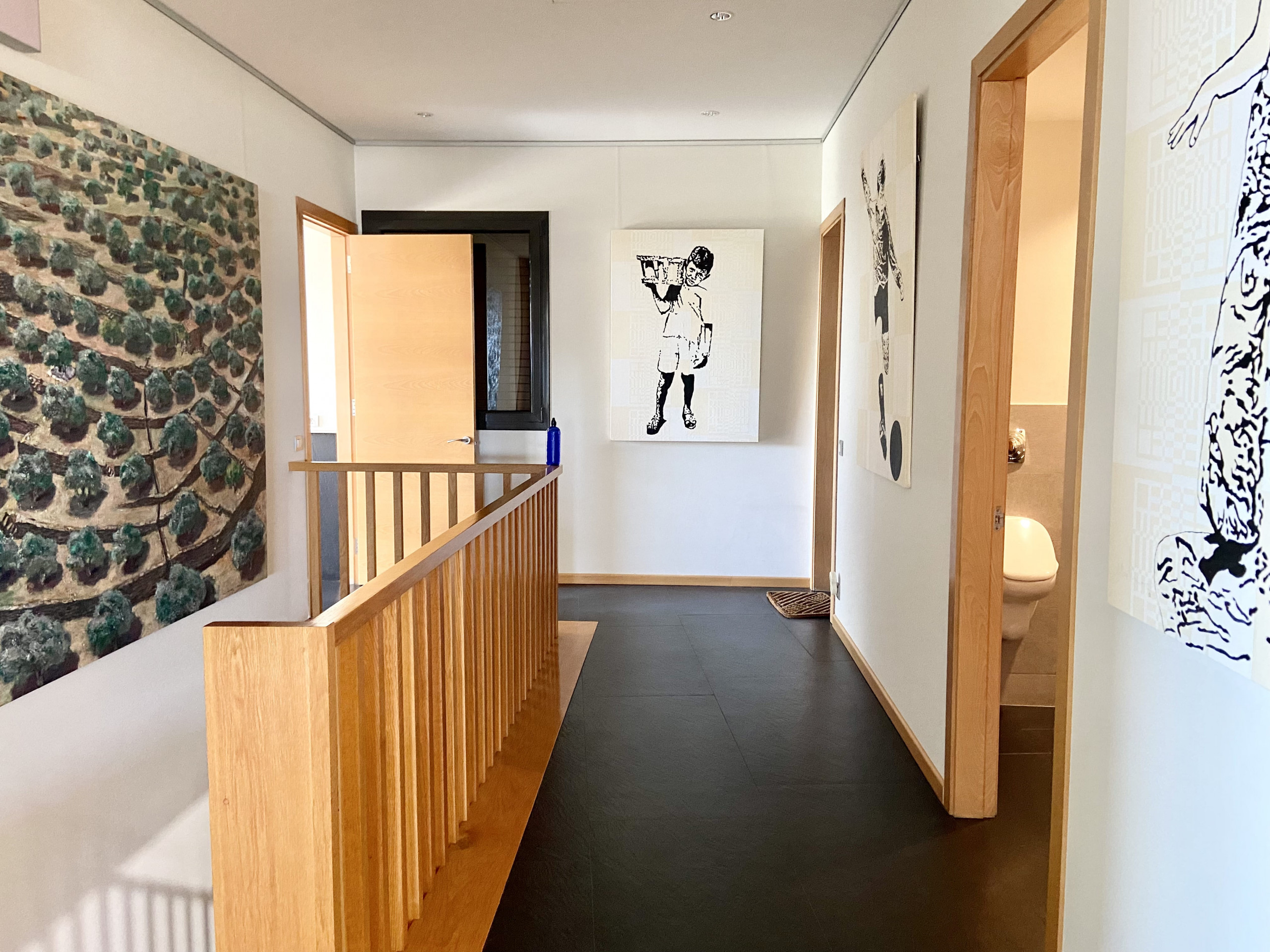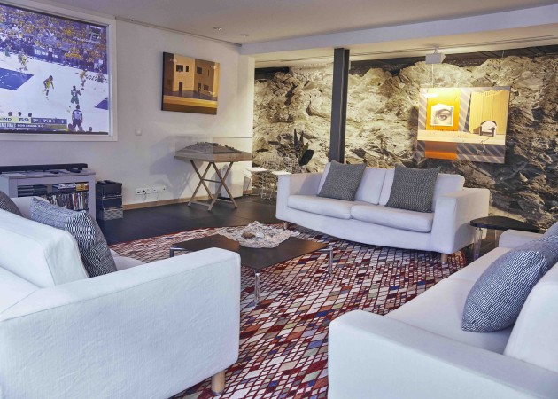 The main house is spread over two floors. On the ground floor there is a lounge with a cinema projector, a games room (billiards, table football) and a sauna.